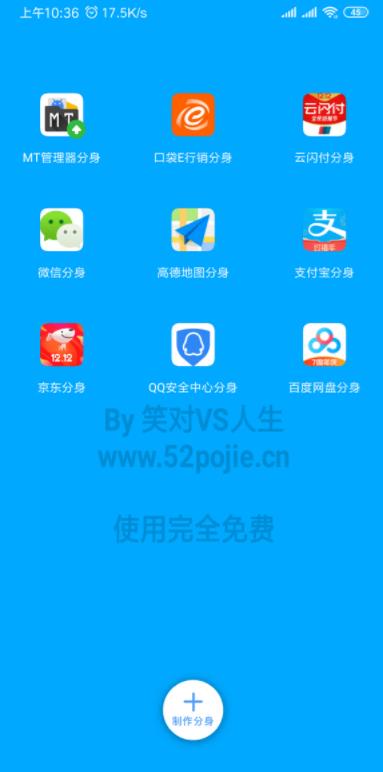 多开分身终结版笑对人生是一款超级多开分身工具内容,为我们带来完美体验方式,想要同时用一个手机登录两个账号,这个就能够满足你,海量众多功能等待我们去探索故事,拥有更多简单故事,各种热门游戏可以轻松让我们组团快速升级出来,去体验到丰富多彩的人生。