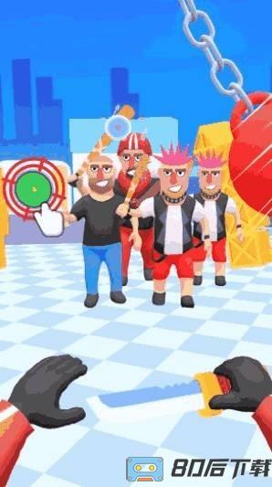 游戏操作简单易上手,开局拥有4把刀,通过不断捡刀来壮大自己