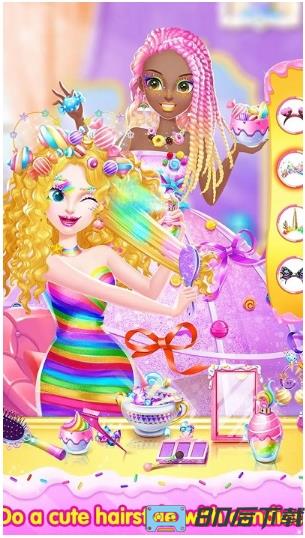 2.利用手中的卷发棒,帮助玩家的公主得到更为丰富多彩的发型。