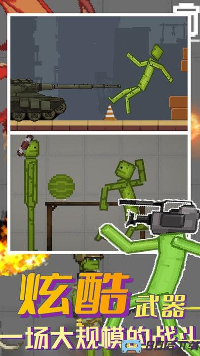 让玩家在游戏中自编自演,可以体验更多有趣的模式,拥有着庞大的武器库,还拥有着多种的角色形象,无论是甜瓜人或者是黄瓜人,甚至是西瓜人都可使用,是缓解压力发泄情绪的不错,选择炫酷的武器能带来大规模的战斗,而且还能看到绚丽的特效。