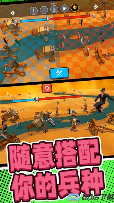 按照自己的策略选择合适的兵种,例如弓箭手、剑士等兵种,扩大自己团队的规模,增强实力,每一个不同的兵种有着独特的优势与劣势,需要熟悉的掌握所有的兵种的属性,建立强大的军团。