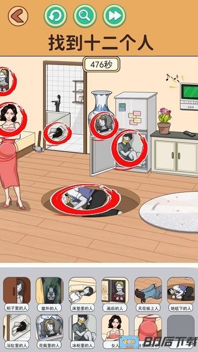 1.玩法非常简单,玩家只需要不断观察图片中的任何一个细节,将所有不合理的地方全部找出,就能够完成当前关卡的挑战。2.每一个关卡在开启之后都会标注出总的错误之处,玩家将所有的错误之处全部找出,就能够完成当前关卡。3.游戏操作非常简单,没有任何难度,非常考验玩家的观察能力和反应能力。4.关卡有时间限定,必须在时间用完之前将所有不合理的地方全部找出,如果没有找出就会闯关失败,玩家需要重新开启关卡挑战。
