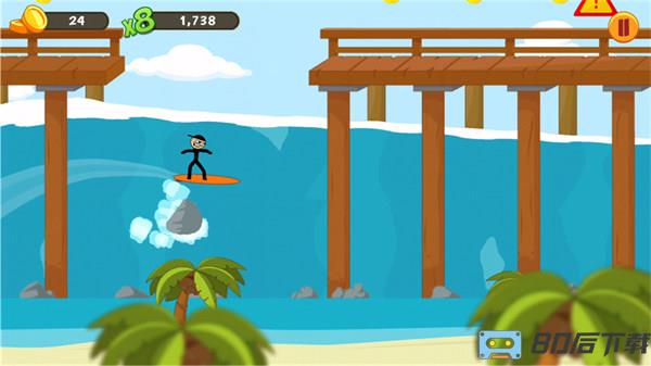 浮世绘冲浪是一款火柴人系列的休闲类益智闯关游戏,在游戏之中玩家所控制的角色是一名火柴人,在不同的场景之中尝试各种不同的冒险,整个游戏比较考验玩家的反应能力和手速,也需要玩家具备一定的策略性思维才可获得游戏的胜利。游戏之中最经典的卡通人物形象,设计特别的简单而又特别的可爱,在不同的场景之中,角色也会发生装扮上的变化。