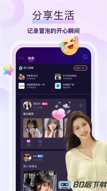 1.不管是想要视频聊天还是语音文字聊天,在这里通通都能满足。2.想要邂逅自己喜欢的朋友,在这里就能满足你的需求。3.超多有趣的灵魂都可以在这里自由的聊天,不用担心,会有尬聊的烦恼平台,每天都会推出各种不同的有趣话题。4.查找附近的好友,能够迅速的感受聊天的魅力,同时也能够和附近的好友快速的发展到线下约会。