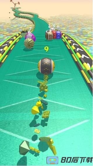 3. 操作比较简单,考验玩家动作的衔接性,毕竟球体是圆的,在滚动时会有不一样的速度,在跑道上也会出现多种道具。