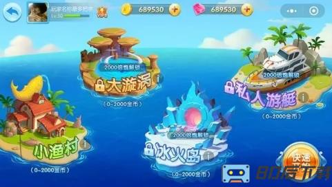 第二大块介绍的就是捕鱼工具,玩家根据等级的提升,所能获得和解锁的捕鱼工具不同,初级的捕鱼工具只有渔网。升级之后能够获得的捕鱼工具就是炮台,炮台也分为4个等级,初级,中级,高级和专业级。等级的划分决定着炮台的装扮承载量和炮台的发射能力以及炮台的攻击力。玩家所升级炮台的等级越高,获得的攻击力越强,所能达到的射击效果更好,拿到的金币就越多。