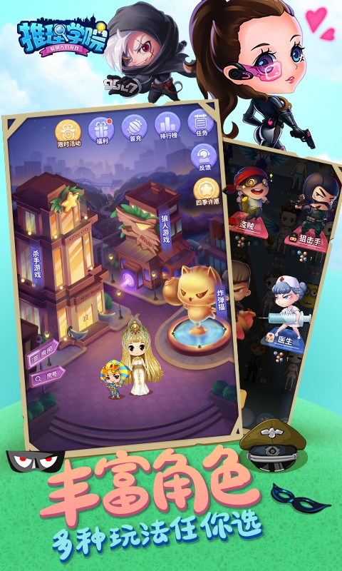 推理学院是一款集智商、推理、休闲与社交为一体的在线杀人桌游。丰富的身份系统,全新的玩法设计,精致的动漫画风,实时的语音互动,让你拥有不一样体验;身临其境的刺激,有着绝佳的代入感;便捷的操作,使游戏更加简单、快乐!还在等什么?不怕上瘾你就来