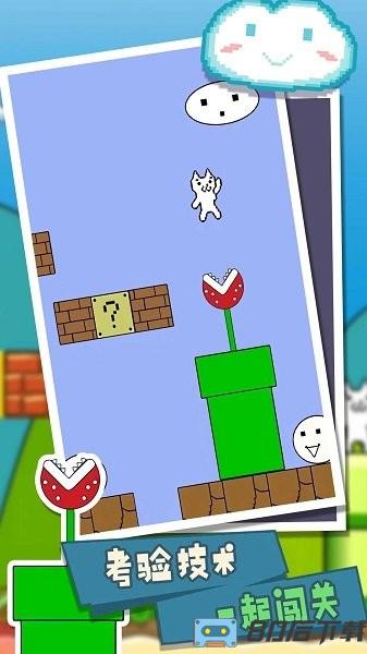 游戏中,你要操作主角猫穿过大量“精彩设计”的关卡,到达终点。关卡会充满大量的危险,突然掉落的板砖,凭空出现的怪物,一碰就挂的蘑菇,感应坍塌的水管。面对层出不穷的陷阱,只有高手才能在一次次挑战后通过终点