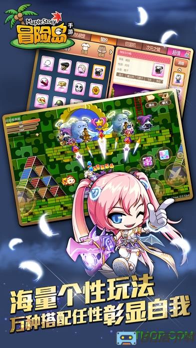-个性时装打扮:海量、精致、活泼、趣味的上千种时装道具尽收眼底!赶快在《冒险岛手游》的世界里打造自己的个性角色吧。
