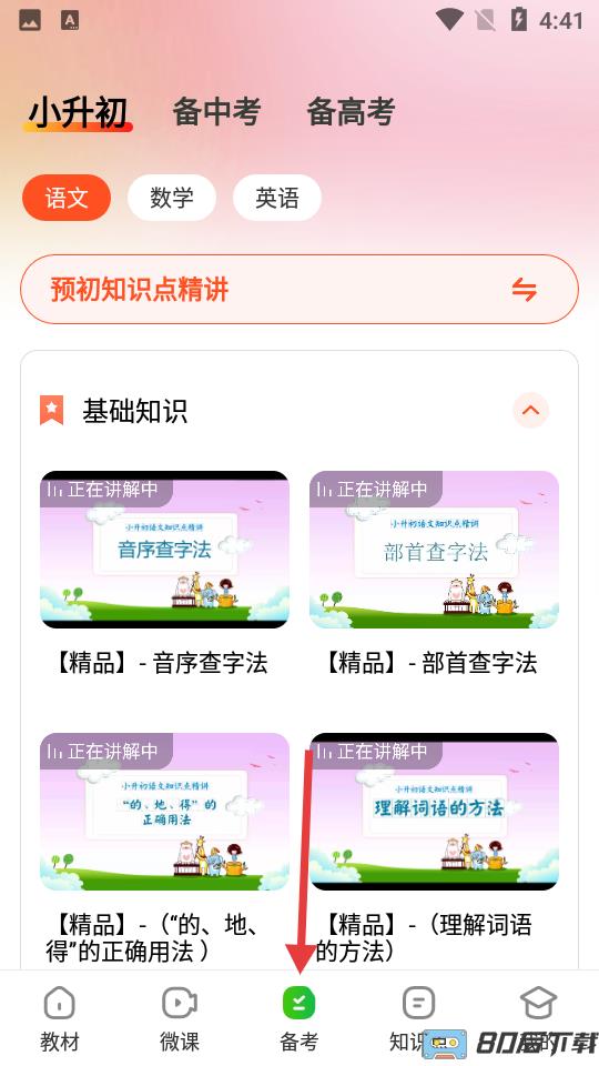 3、备考专区针对小升初设计衔接课程,通过音序查字法等专题教学巩固基础。