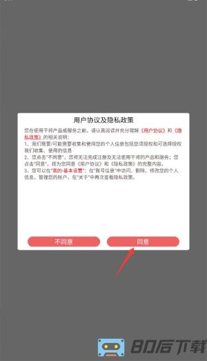 1、首次启动应用时,系统会显示用户协议和隐私政策,阅读后点击同意按钮进入主界面。