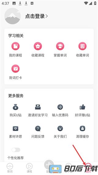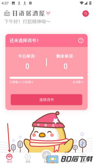 1、背词页面采用居酒屋主题设计,可自选词库并实时显示当日学习进度数据。