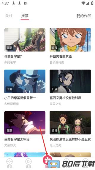 3、配音专区包含热门动漫经典片段,用户可选择你喜欢的素材进行配音训练。