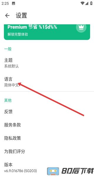 2、点击设置按钮进入详细界面,在此可根据个人偏好修改应用程序的显示语言配置。