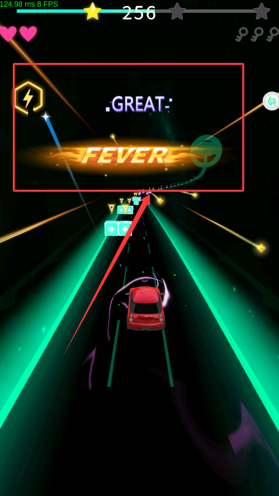 2、整体背景音乐与游戏进程保持高度一致,玩家可以准确把握不同音符变化时机进行冲刺操作,这种音游与赛车的结合提升了游戏。