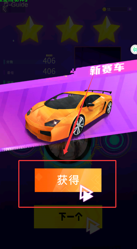 1、进入游戏后首先根据引导教程熟悉基本操作,包括通过点击屏幕控制赛车转向和漂移。