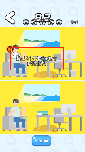 1、通过指尖触控精准标记两幅图片的相异之处,系统会实时反馈正误判断,错误标记将扣除相应时间作为惩罚。