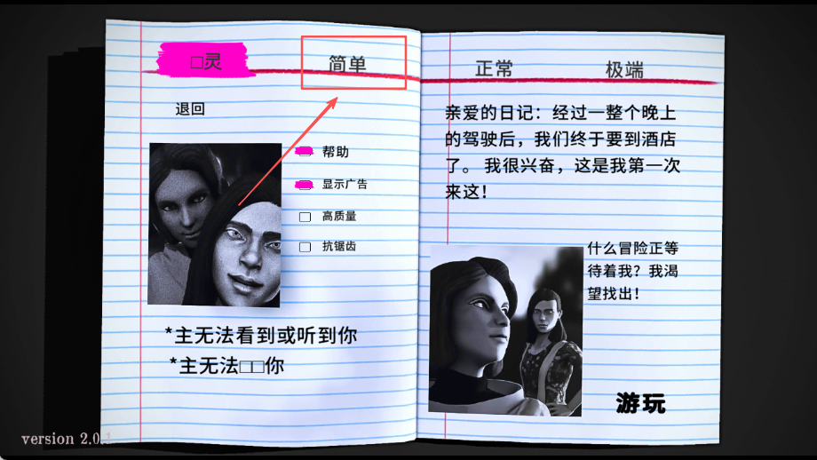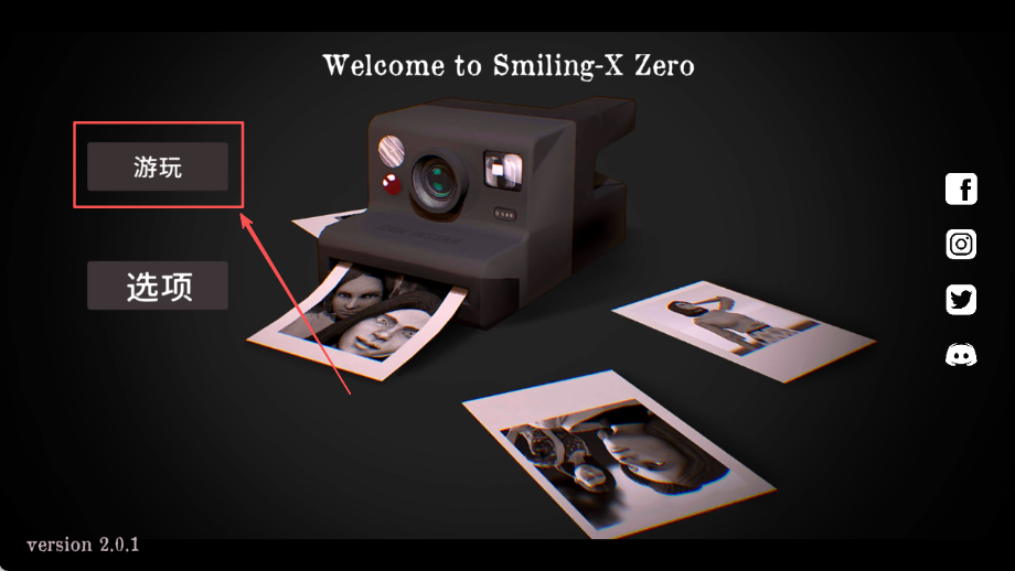 3、在主界面选择游玩按钮进入游戏,这是正式开始冒险的第一步,需要调整好心态迎接即将到来的恐怖挑战。