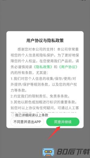 1、首次启动应用时,系统会显示用户协议和隐私政策,阅读后点击同意按钮进入主界面。
