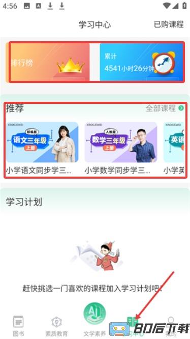 4、学习中心支持课程计划管理,可查看学习排行榜并自主添加同步课程内容。
