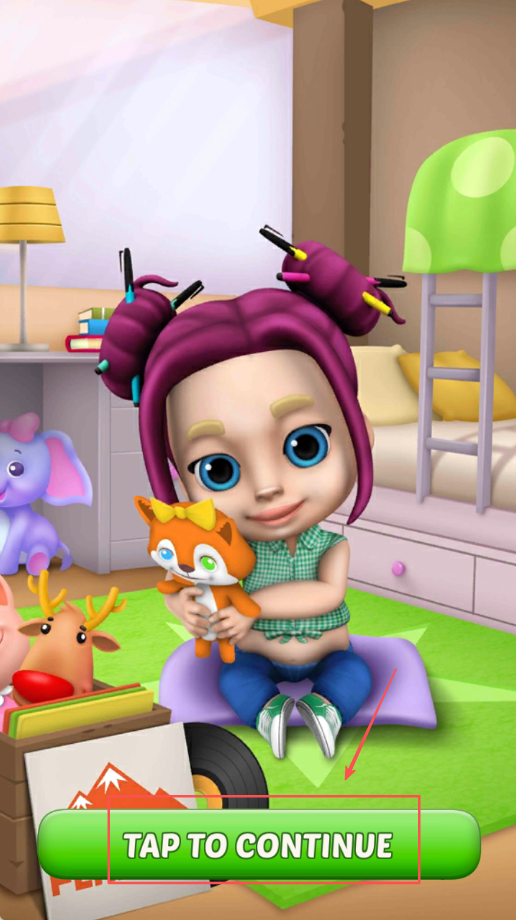 3、点击TAP TO CONTINUE继续游戏剧情,进入安娜的日常生活场景,了解她的喜好和性格特点,为后续的互动和装扮做好准备,熟悉角色。