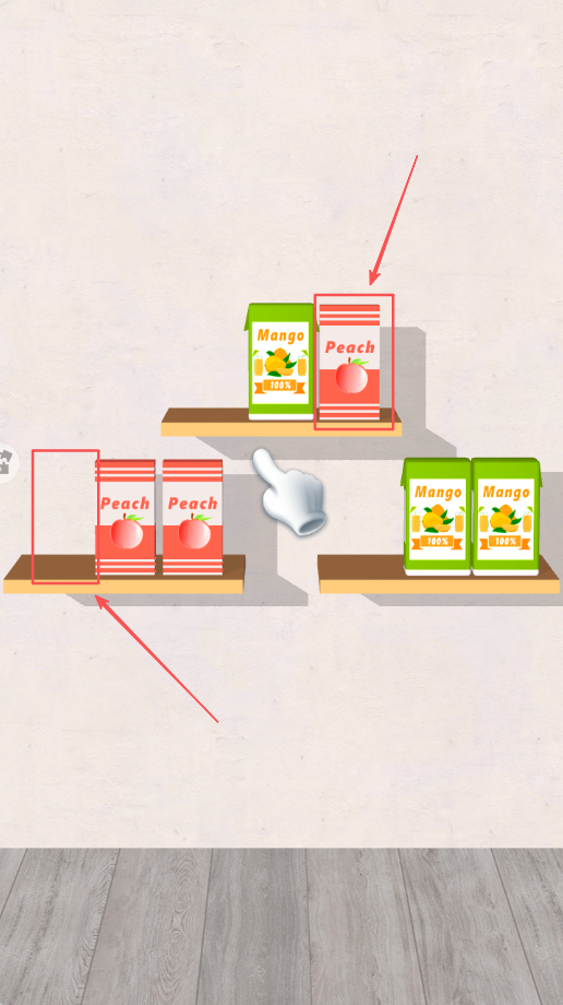 3、将橙子移到下方完成关卡,学习基础操作流程,理解游戏规则和通关条件,为后续更复杂的收纳任务打下基础,掌握技巧。