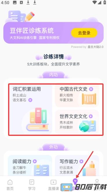 3、诊练系统依托AI技术开发词汇积累等训练模块,需登录后使用智能学习功能。