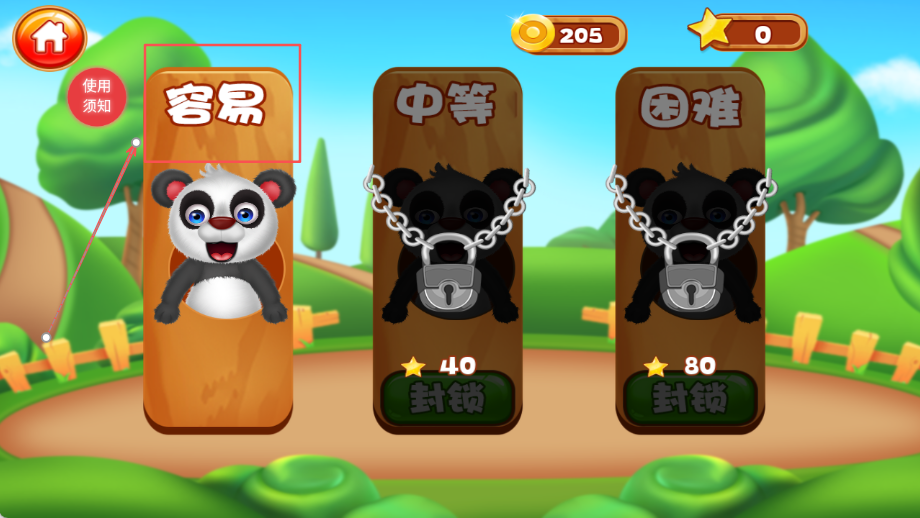 1、选择容易模式进入熊猫关卡开始游戏,这个模式适合新手玩家熟悉游戏规则和操作方式,为后续挑战打下基础,循序渐进学习。