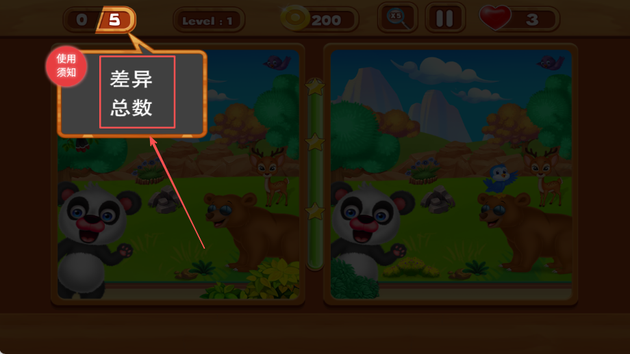 3、查看差异总数了解需要寻找的目标数量,明确任务要求,合理规划寻找顺序和时间分配策略,提高效率。