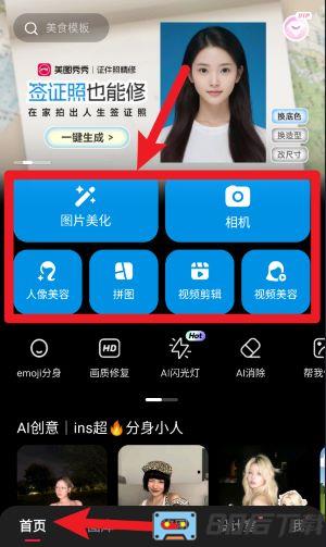 1、在“首页”中可快速进入图片美化、拍照、美颜和拼图等常用编辑功能,适合新手一键快速操作。