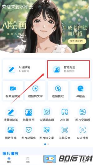 2、在应用首页中找到“智能抠图”选项,点击即可启动该功能。