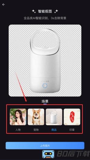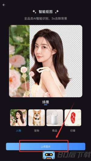4、从设备中上传选定图片,系统将自动执行抠图处理。