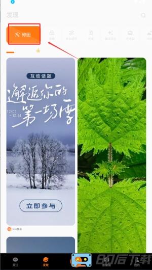 2、在软件首页中,找到并点击“修图”功能按钮,进入编辑模块。