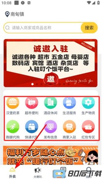 1、外卖页面提供商家搜索与商品查找功能,涵盖汉堡奶茶及超市便利等多元消费场景。