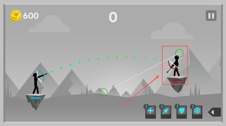 3、长按屏幕瞄准对手位置,通过手指按压屏幕的时间控制拉弓力度,观察风向和距离因素,精确瞄准目标的要害部位提高命中率。