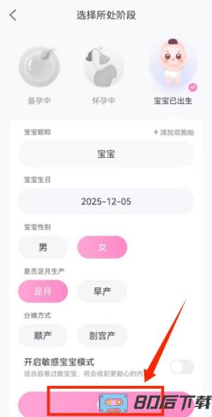 3、接着需进一步明确当前状态,例如选择正处于“备孕阶段”或“孕期”的具体时期。
