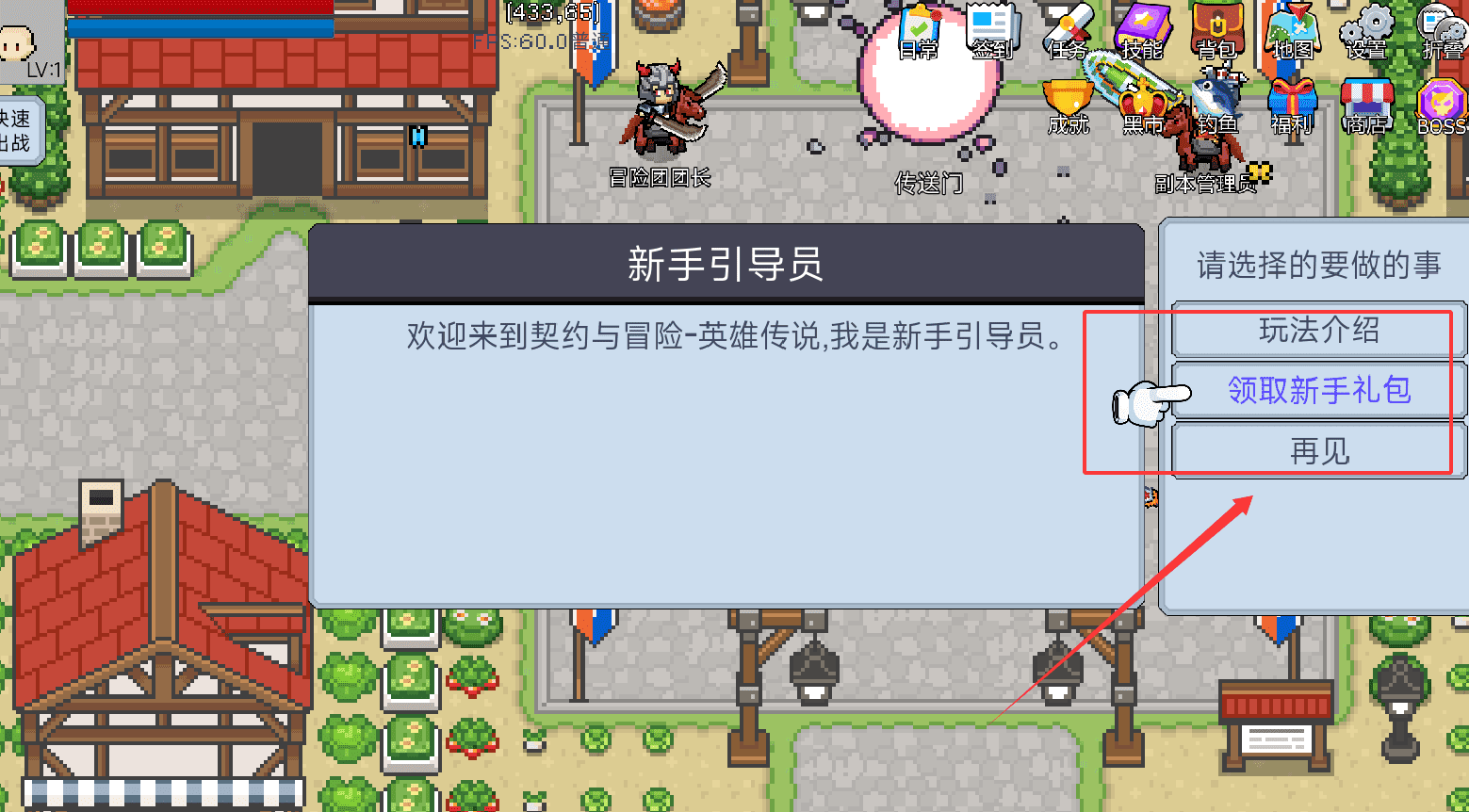 1、创建角色后跟随指引领取新手礼包获取初始武器与宠物,为宠物装备剑盾以增强生存。