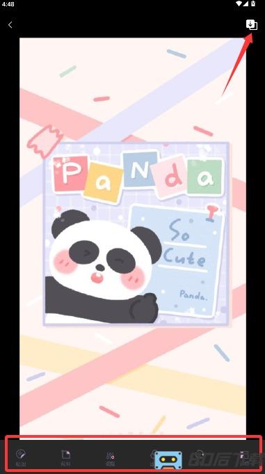4、使用贴纸、裁剪及滤镜等工具调整图片效果,完成后保存至相册即可。