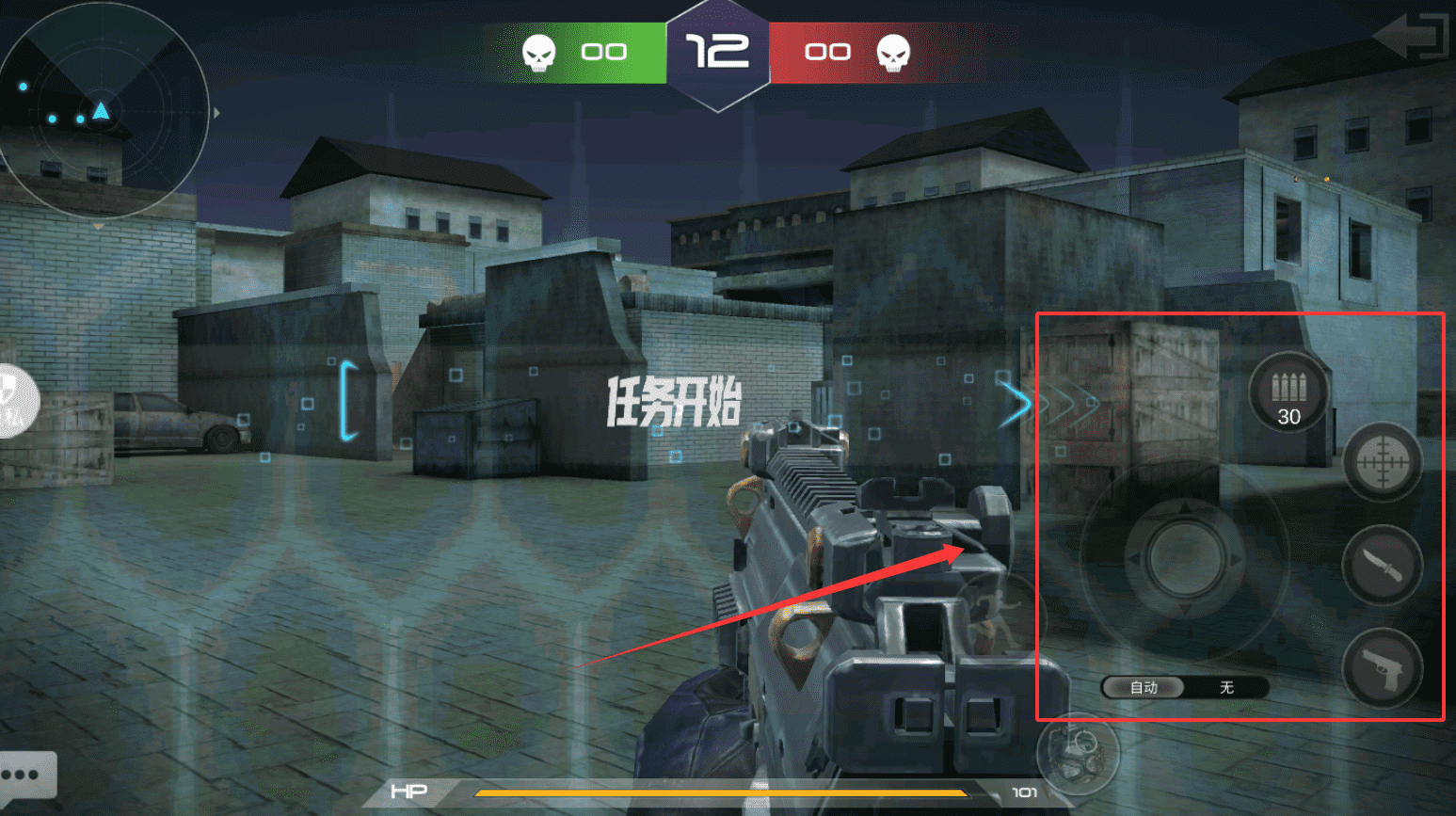 3、进入战斗画面后,需迅速熟悉虚拟摇杆与射击按键布局,这些操控图标负责角色移动、瞄准与开火等核心动作。