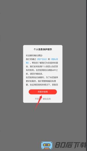 1、首次启动应用时,系统会显示用户协议和隐私政策,阅读后点击同意按钮进入主界面。