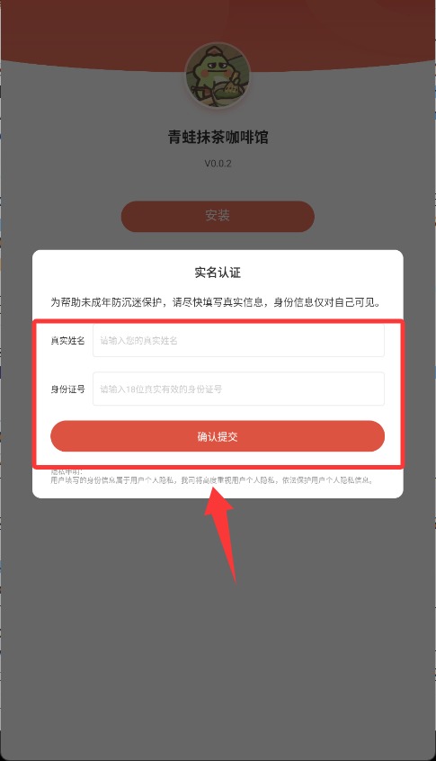 1、启动游戏后,在主界面找到并点击"实名认证"入口,进入信息登记页面。