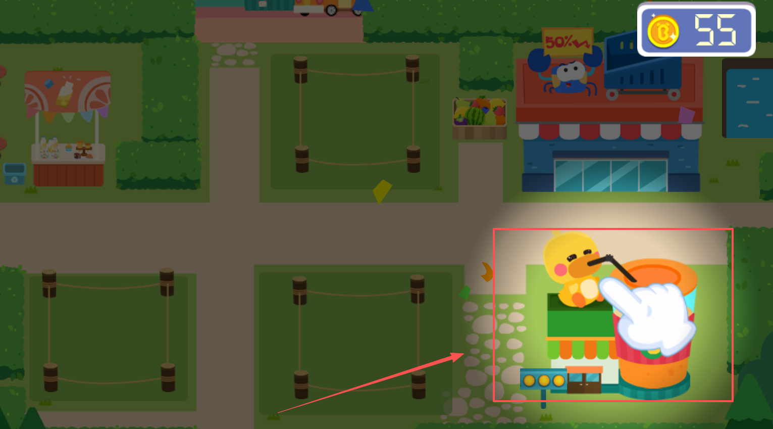 1、在果汁店铺环节,系统会提示顾客所需的水果种类,孩子需从货架上准确辨认并选取相应水果,随后进入。