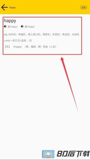 4、系统将显示该单词的详细中文释义、例句及发音,便于您学习掌握。