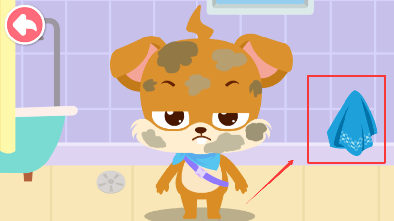 2、随后在习惯指南模块,孩子需要协助卡通角色完成洗脸、洗头等任务,例如点击毛巾为皮皮擦脸。通过重复性操作加深对日常清洁流程的记忆。