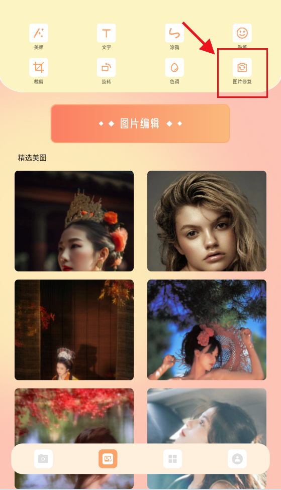 2、进入图片编辑界面,使用美颜工具优化肤质或添加文字涂鸦,结合贴纸与裁剪旋转功能调整画面细节,打造独特风格。