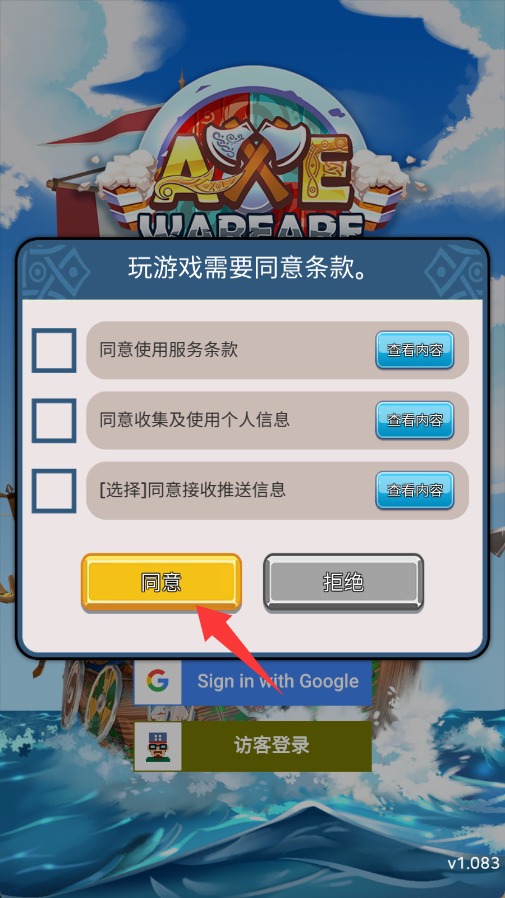 3、仔细阅读并点击"同意"勾选用户协议与游戏服务条款,确认授权与合规使用。