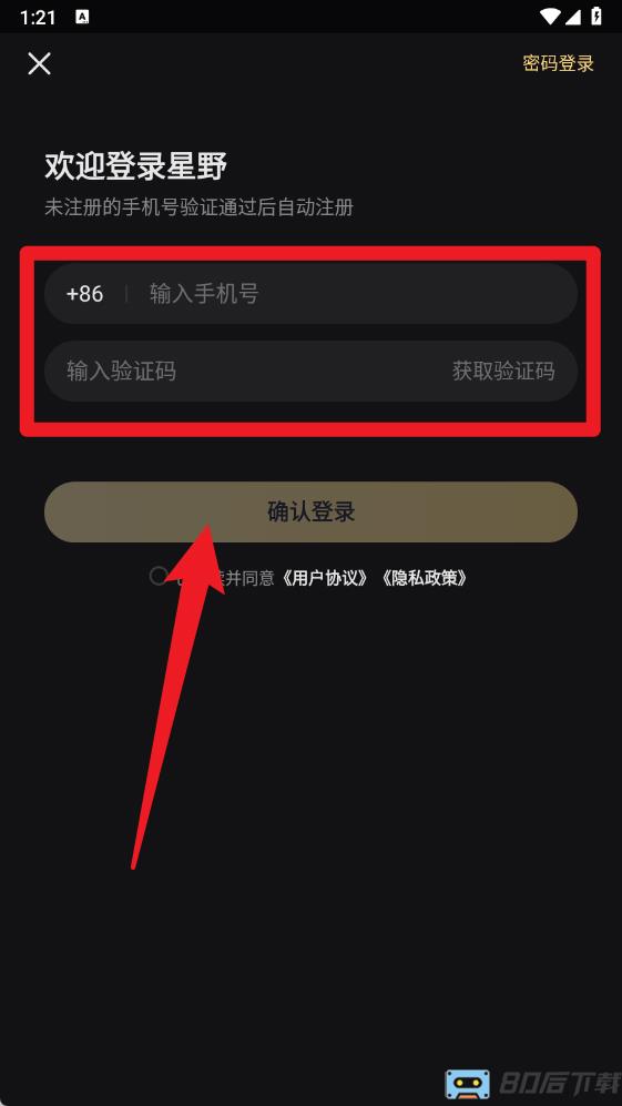 3、在【登录界面】,用户可通过手机号码与验证码进行注册或登录,完成后可享受更多互动和个性化推荐服务。