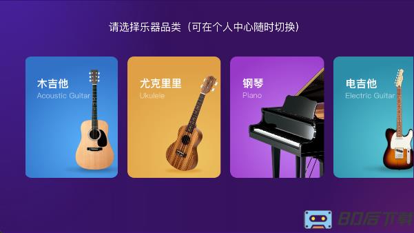 1.点进应用会看见多种类乐器可选,例如“木吉他,尤克里里,钢琴和电吉他等等”钢琴作为打个比喻;