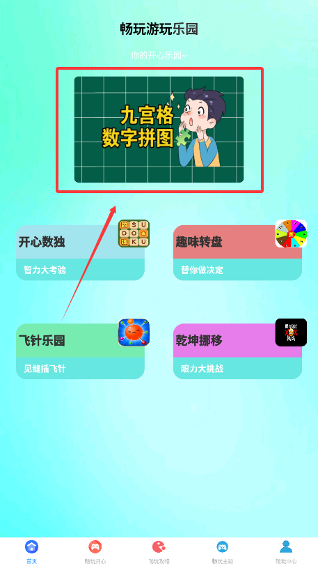 2、接着呢,进入软件首页可以浏览各种乐园游戏,比如从九宫拼图或数独开始体验,点击图标就能直接进入游戏界面啦。
