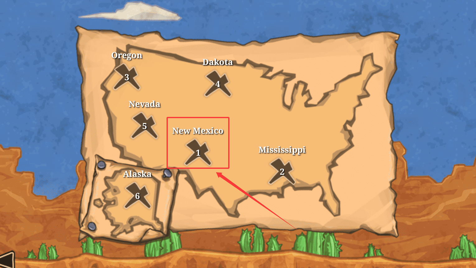 2、接着看第三张图,这似乎是一个任务或选择界面,显示了像“Oregon 3”、“Nevada 5”等地名和数字。